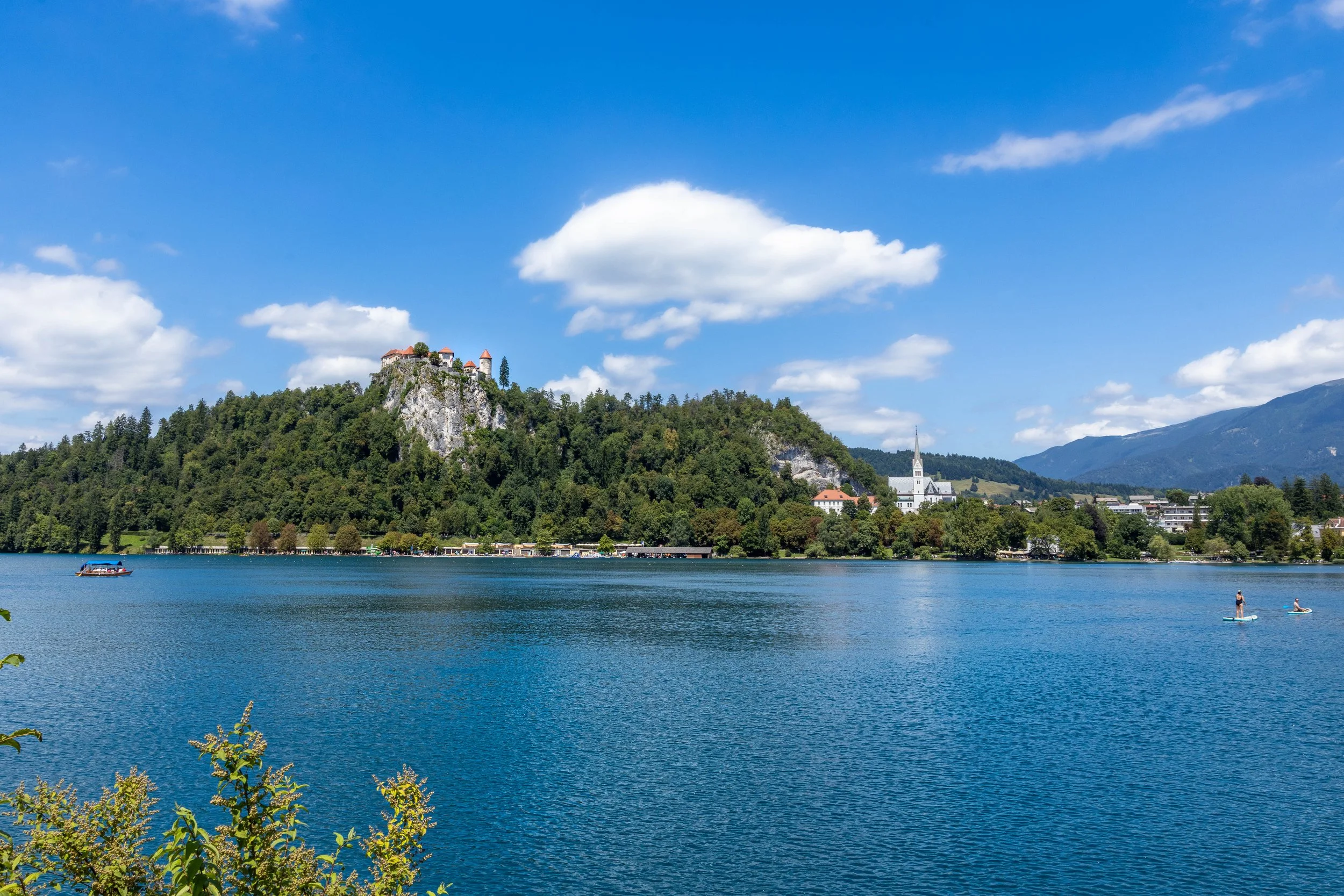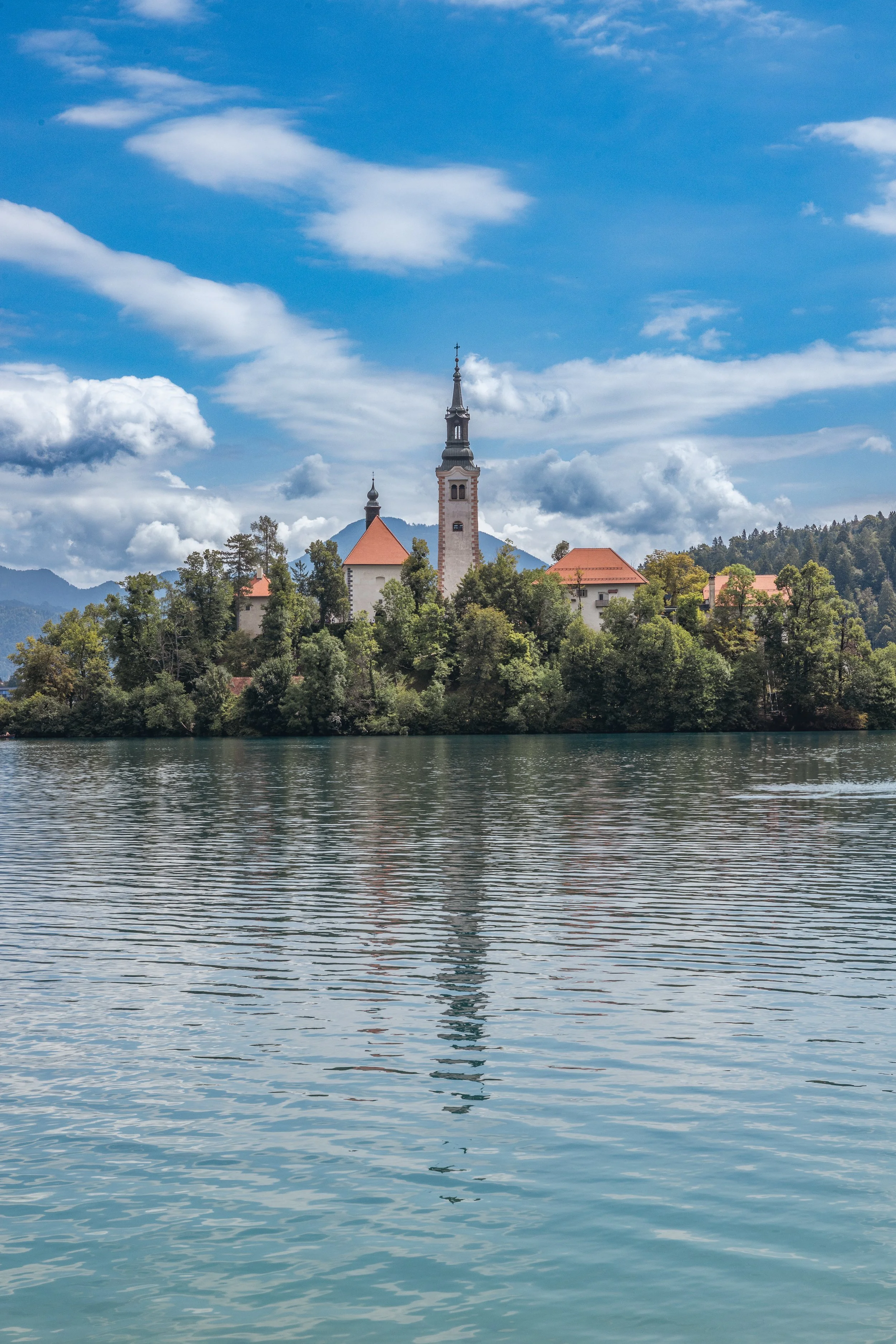 At the heart of the lake rises the church on Bled Island, its tower breaking the horizon. Surrounded by trees and water, it stands as both refuge and reminder — a place where echoes become prayer.
